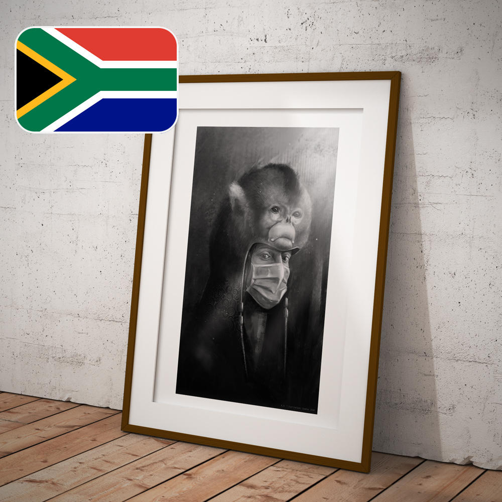 The first in a series of digitally painted portraits depicting different characters combined with animal elements and heads. Reflecting on the pandemic, it seemed appropriate to put a mask on this one, which features the golden snub-nosed monkey.